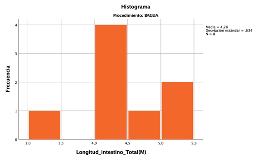Gráfico 1: Longitud Intestinal en pacientes sometidos a BAGUA en Pacientes Bariátricos. Hospital Surgimed. Sept. 2021- mayo 2022
